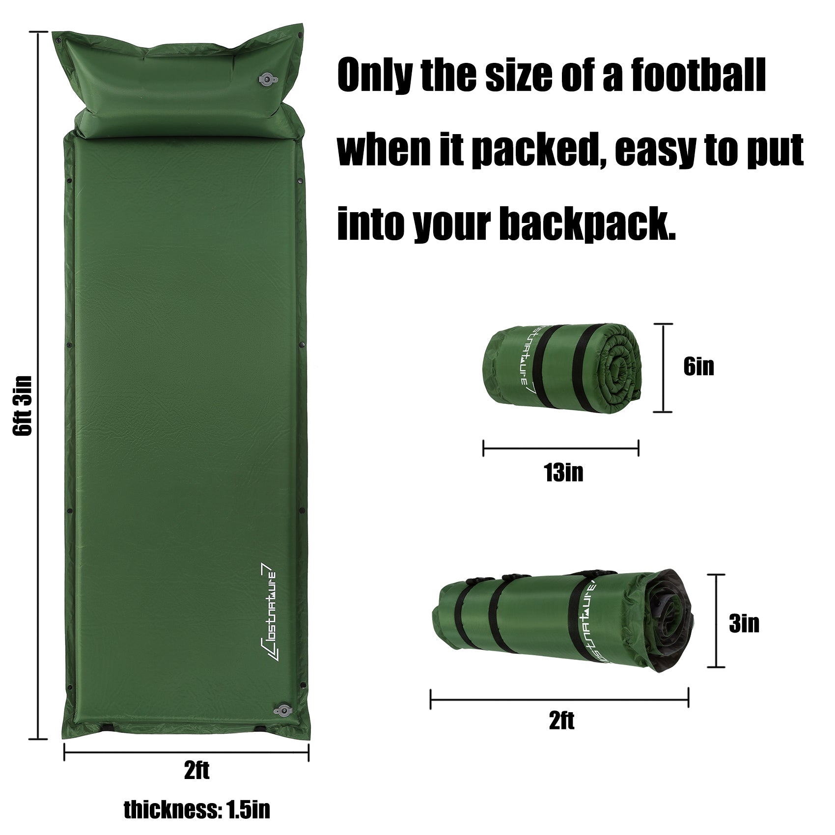 Clostnature Self Inflating Sleeping Pad for Camping - 1.5 inch/3.8cm Camping Pad, Lightweight Inflatable Sleeping Mat, Green
