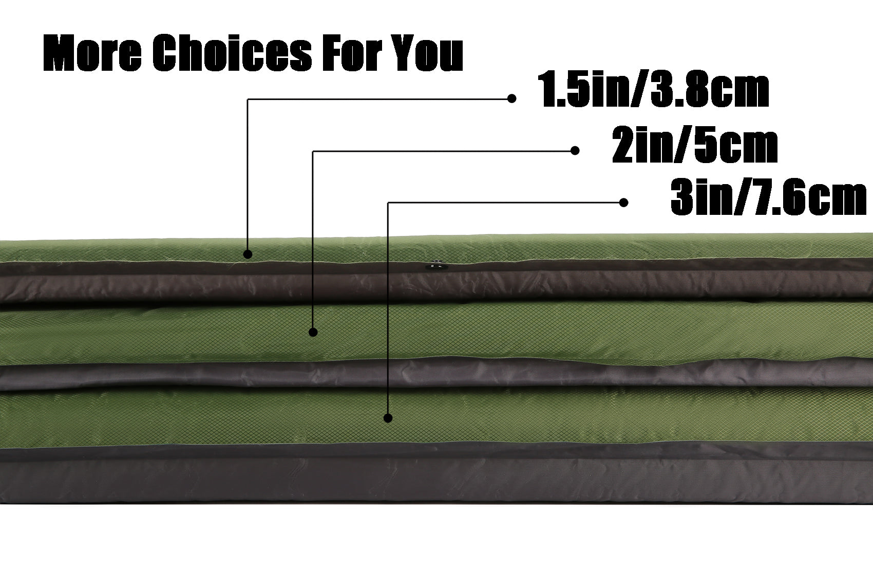 Waterproof fabric with 3.8 cm thick memory foam padding; The camping sleeping pad introduces environment-friendly material without any plastic or chemical smell, this inflatable sleeping pad helps you have a pleasant sleep at night by offering firm supporting; Up to 4 R-value provides ultimate insulation in cold weather.