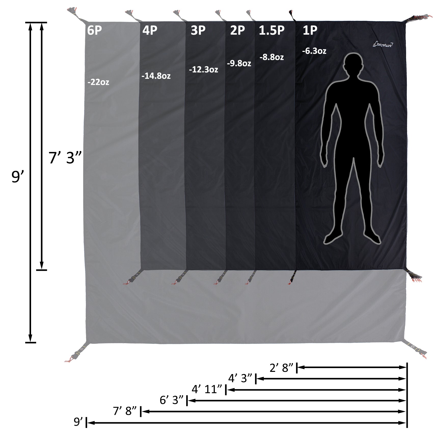 A tough groudsheet that can be easily overlooked but it make all the difference when setting up the campsite. It made out of ripstop 190T Poly with superior waterproof coating and designed to not only be lightweight but also to be waterproof and powerful