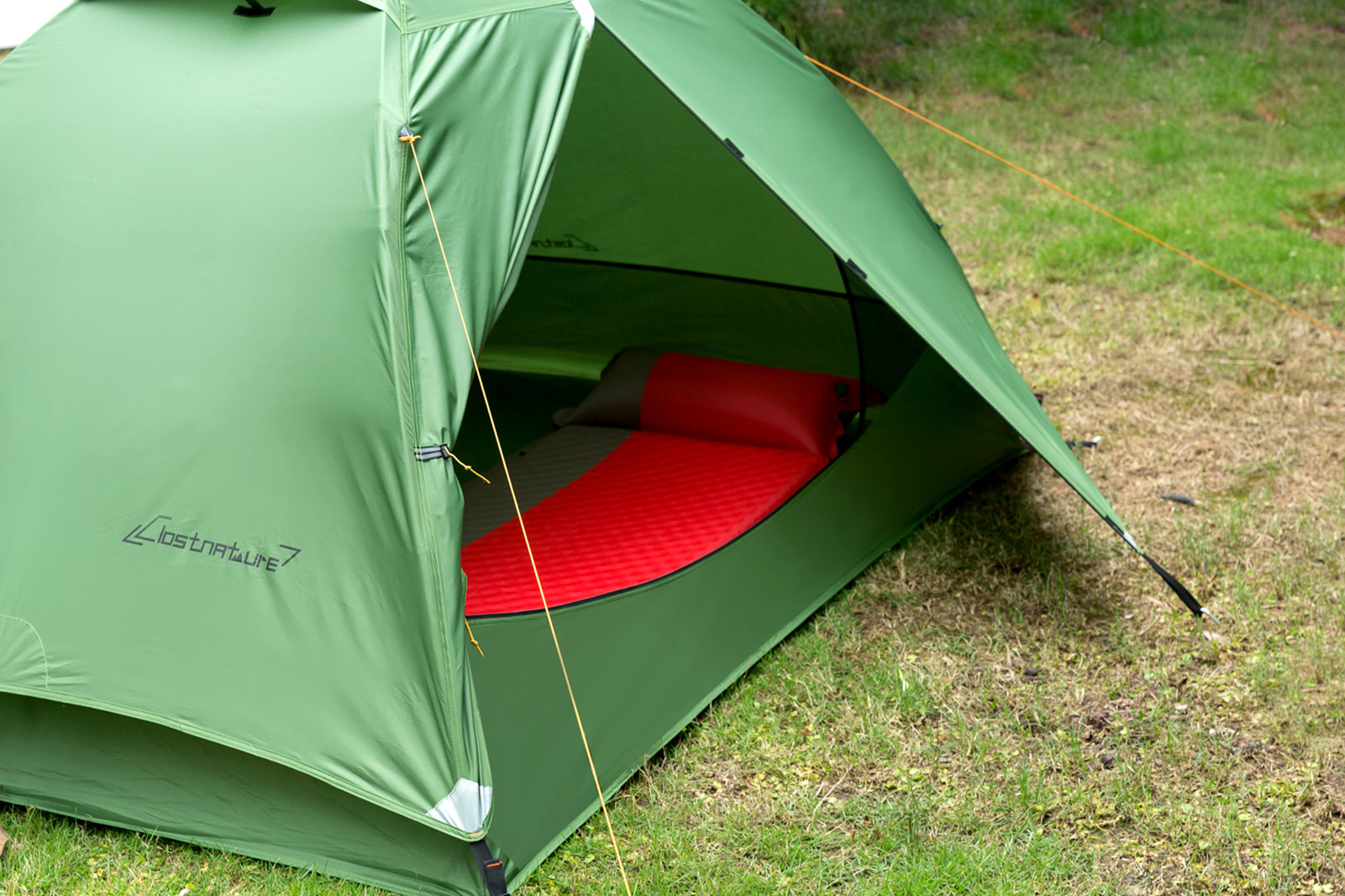Interior entire mesh walls designed to offer great ventilation, this ultralight hiking tent has 2 D-shaped doors and 2 vestibules on the side design provide convenient enter&out and extra storage for your backpack or shoes. This tent is compact and portable, also great for hiking, backpacking, kayaking, mountaineering, fishing or car camping
