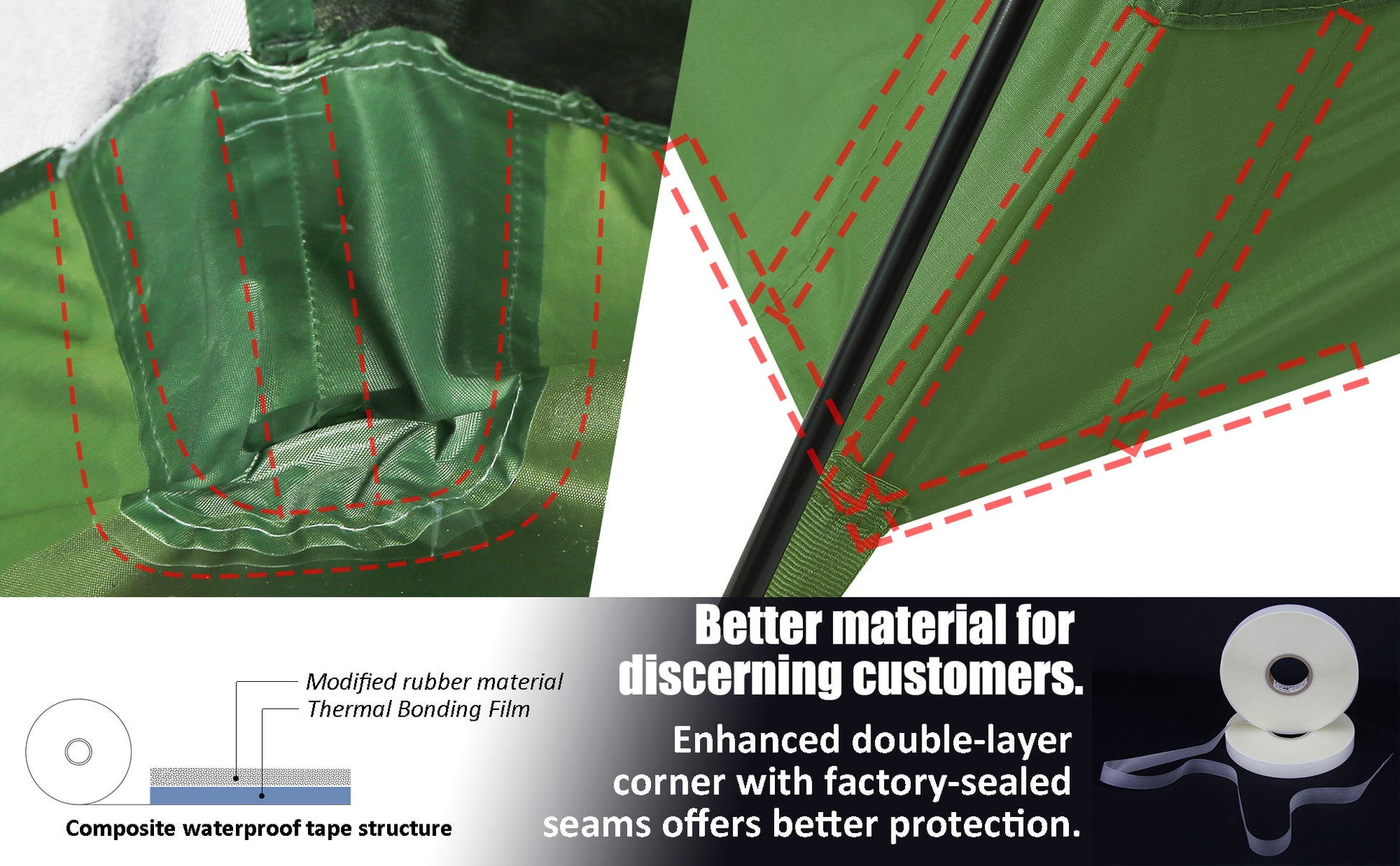 210T Polyester rain fly&groundsheet with PU 5000 coating are firmer than Oxford fabric. Weatherproof material with factory-sealed seams keep you dry and comfortable in all season&all weather condition! Definitely a decent lightweight 4 person tent for camping or backpacking!