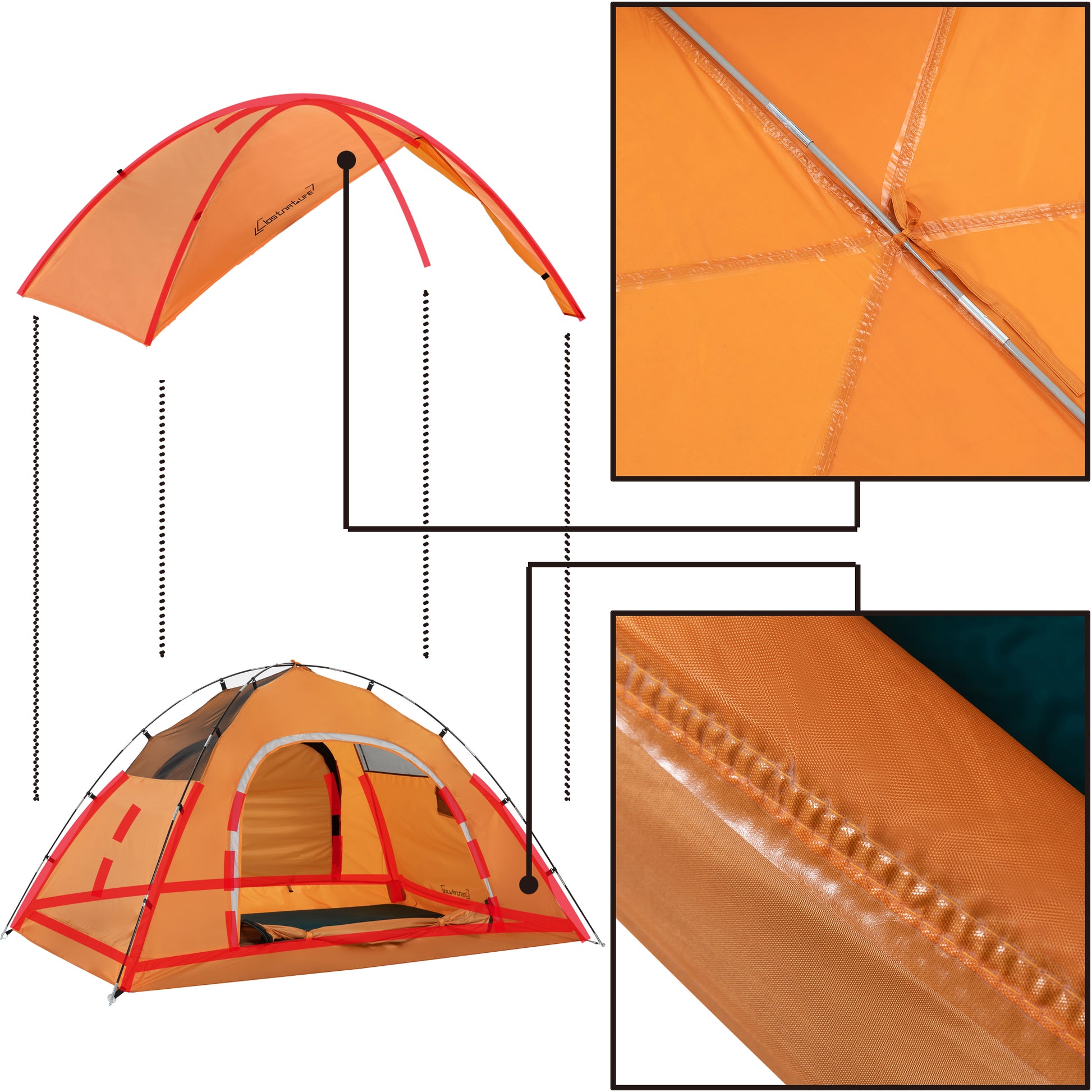 - Clostnature 4 man tent allows you to stay comfortably with three friends, or as a roomier alternative to a two person shelter on wild camping expeditions. Extremely simple dome-style of the easy set up tent, no experience needed with instruction. Only takes less than 5 minutes to quick set by 1-2 people.
